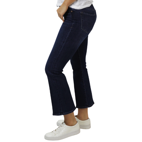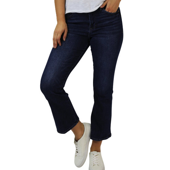 Cropped inseam on super stretch denim in rich indigo shade. 10 1/4" Front Rise (include waistband), 17 1/4" Leg Opening, 26 3/4" inseam (Size 27)